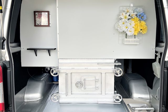当店の火葬車は、一般の業者さんの車と同じ車種で、店名やロゴなどは入っていない車両です。何か特別に架装